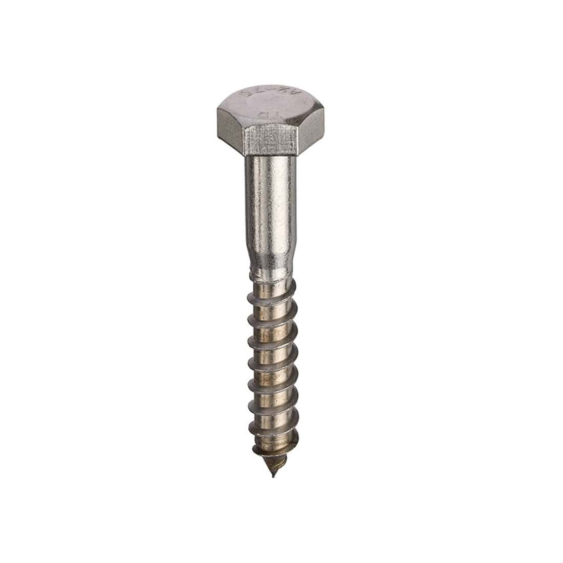 Mild steel hexagon head coach screws bright zinc plated DIN 571. Suitable for use into wood or for a secure fixing when used with a nylon plug.